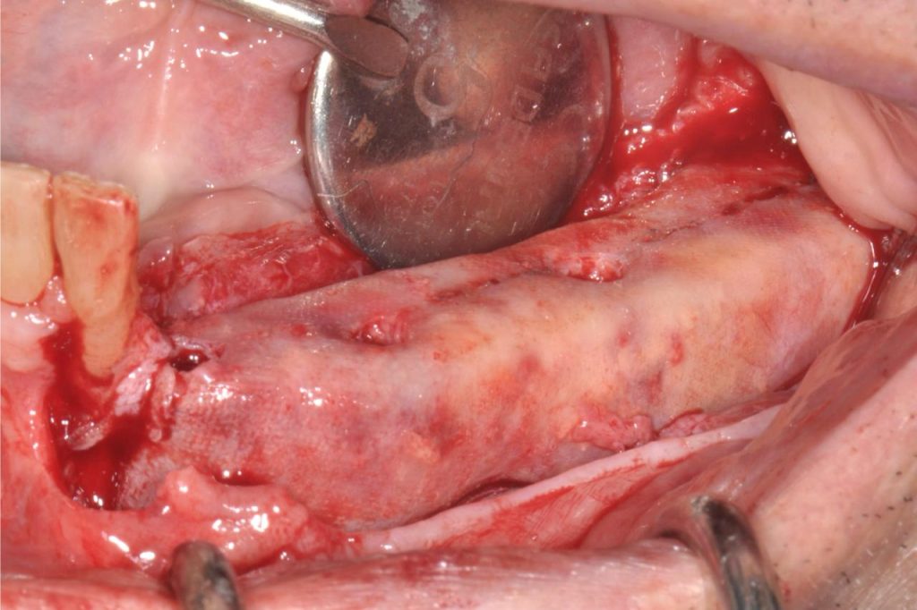 - Preparazione del sito ricevente con l’elevazione di un lembo a mezzo spessore